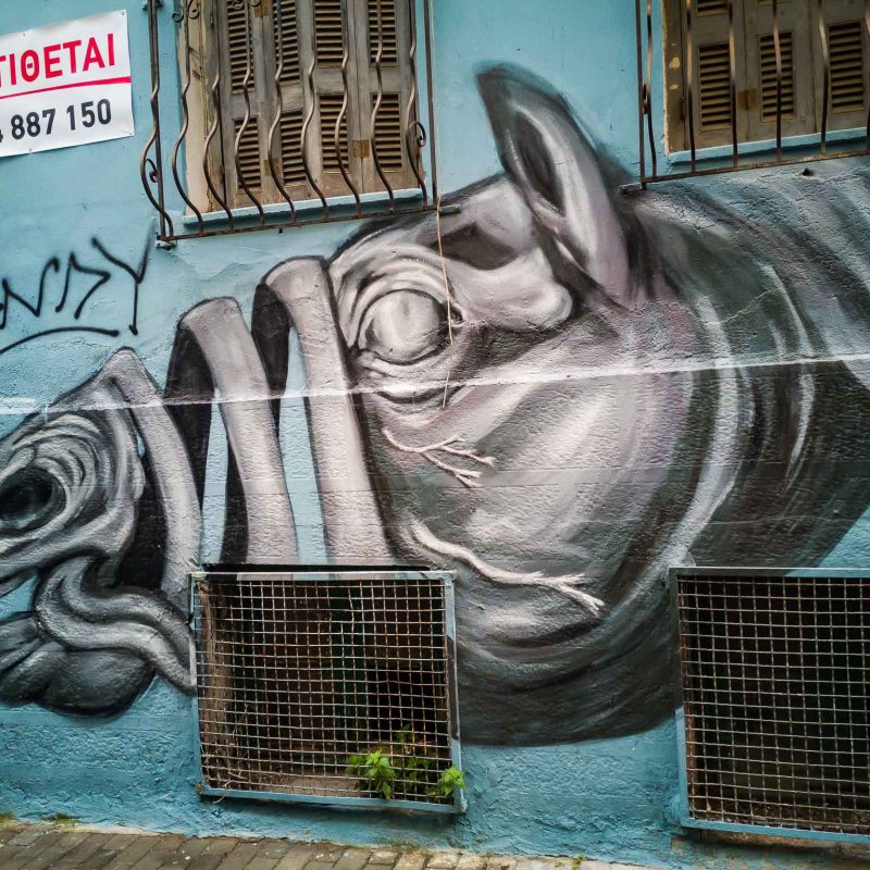 I have a confession to make: I’ve been in Athens for three days and didn’t see the Akropolis. First there was the Cycle Cities Symposium to attend, an annual meeting of the world’s best bike tour operators, that turns a bit boozy in the evenings. And then on the last day, we had three hours planned for a proper visit, before our island ferry left Piräus. Since our hotel was just a short stroll away, we thought that ample time, but we didn’t account for the district we had to traverse to get there. Since our very own graffiti special forces 1UP and Berlin Kidz payed a visit to Athens for the Graffiti Olympics we knew Athens to be a good city for urban creativity, but what we found on our walk was beyond everything we could’ve expected. It’s not just the amount of street art that’s breathtaking, but the exceptional quality of the works. There seems to be some organized effort by the city involved, but unlike the cities that tried to use street art to revitalize their inner districts, you can feel that this is just an extension of a vibrant organic scene, with hundreds of artists. According to our guide from Athens by bike the major reason is, that, even though spraying is forbidden almost everywhere, no one cares.